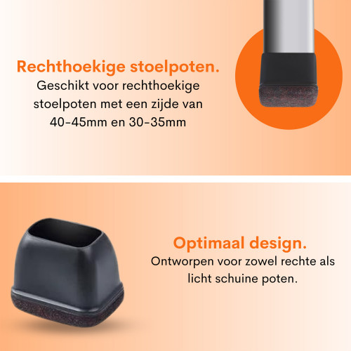 De Premium stoelpootdop van FLOOQ® is gemaakt van 100% massief vilt. Het vilt is gemaakt met hoogwaardige materialen. Als u opzoek bent naar een effectieve stoelpootdop met een lange levensduur en die goed aansluit, dan ben ik de stoelpootbescherming die u moet hebben. Deze variant is verkrijgbaar in drie verschillende maten. Met behulp van mij kunt uw stoelen verplaatsen zonder dat deze geluid en/of krassen maken op uw vloer. Deze variant is geschikt voor alle vloertypen binnenshuis. Uw voordelen: - Geen geluid van schuivende stoelen -Gemaakt met hoogwaardig vilt - Eenvoudige bevestiging - Geschikt voor alle type vloeren - Stijlvol design